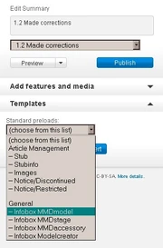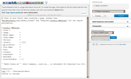 </p><p>http://mikumikudance.wikia.com/wiki/Template:Infobox_MMDmodel (a freely generated template will appear when you create an article and select models)
